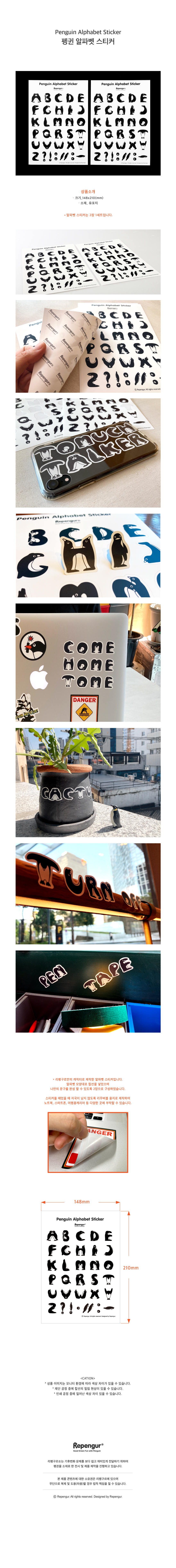 펭귄 알파벳 스티커 (2매)